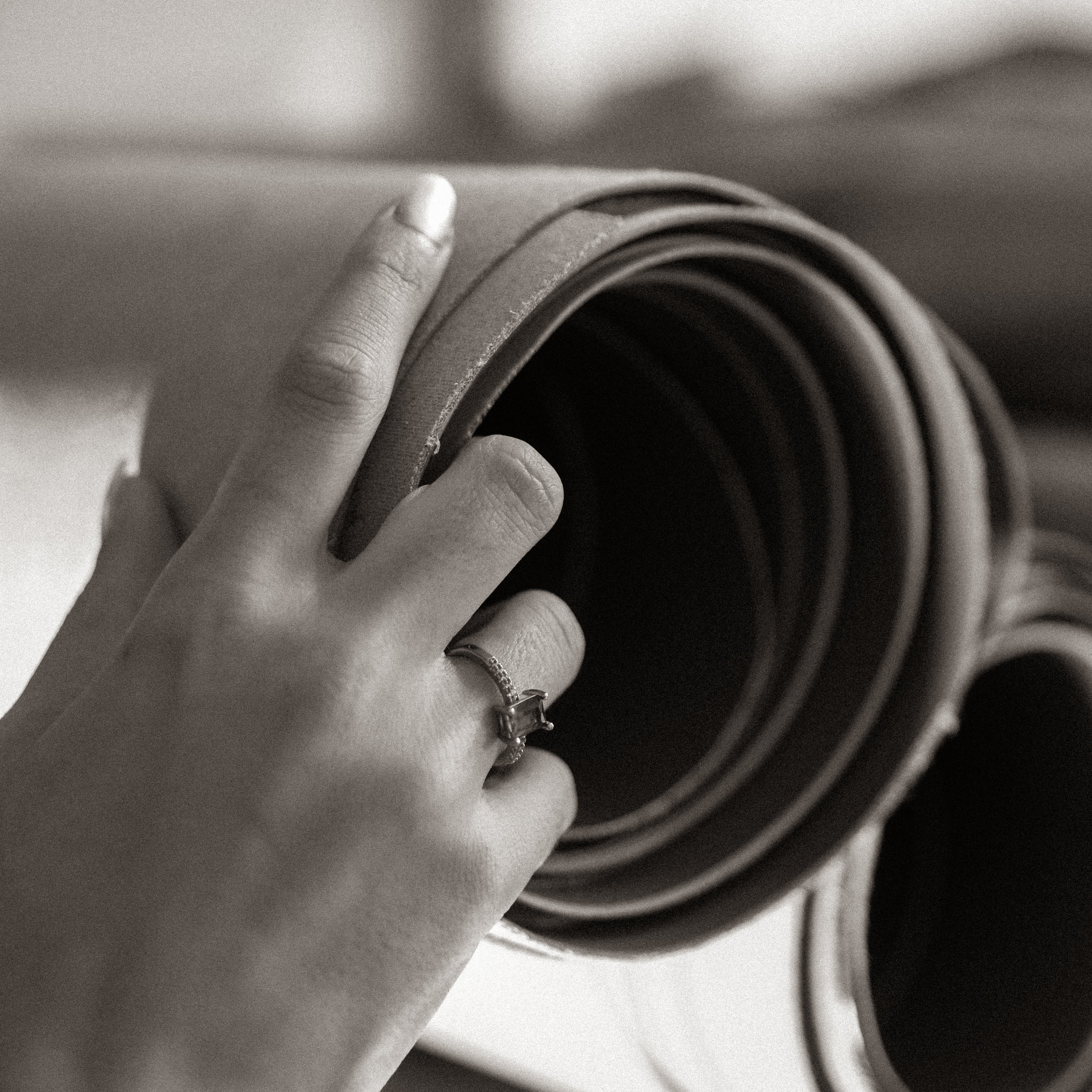 Siamo coinvolti in ogni fase della creazione delle nostre borse, dalla scelta della pelle al taglio, all'assemblaggio e alle rifiniture. Il processo è meticoloso e impegnativo, ma è ciò che lo rende così significativo. Questo approccio garantisce una lavorazione impeccabile e il giusto prezzo per pezzi senza tempo, fatti per durare.